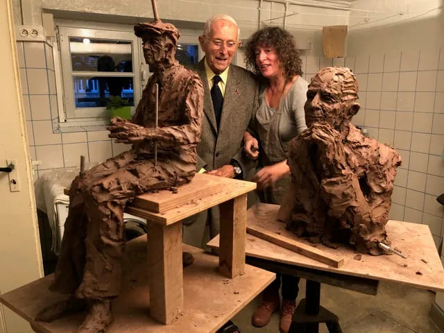 De là est né un projet : celui de donner corps, par la sculpture, non seulement à Pierre Rolinet, mais à toute la multiplicité des histoires individuelles, dramatiques, singulières, qui habitent ces lieux et cette mémoire collective. Cécile s’est rendue chez Pierre à l’automne 2020. Durant une semaine, dans un atelier improvisé au sous-sol de sa maison, ils ont partagé récits et séances de pose, et vu naître deux portraits en terre.