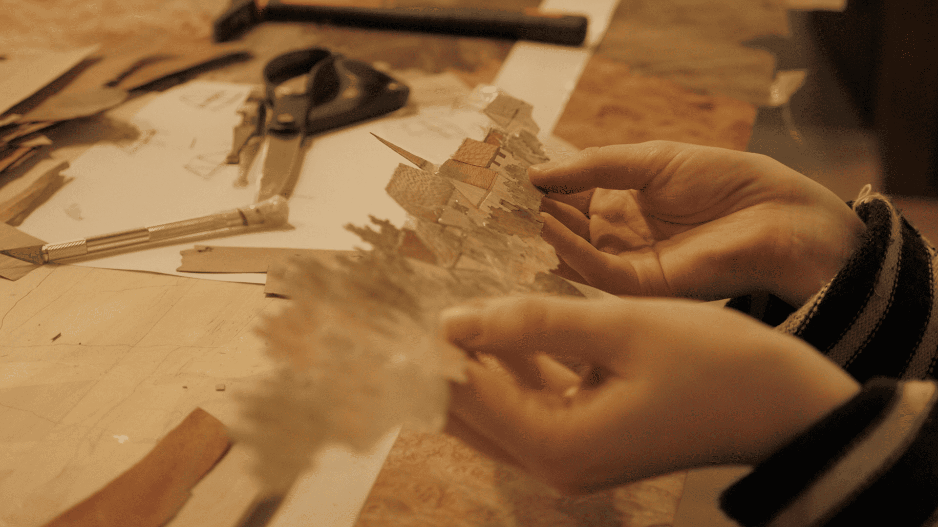 elle s’immerge dans l’atelier de marqueterie d’art familiale. A travers les archives, elle remonte